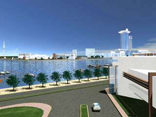 Une importante place centrale aménagée au bord du lac constituera un point de départ dans les deux sens Est et Ouest pour le développement d’une frange du littoral paysagée, et qui abritera un ensemble d’équipement de loisirs – d’animation et de tourisme avec une esplanade piétonne d’environ 7km de long sur le front du lac.